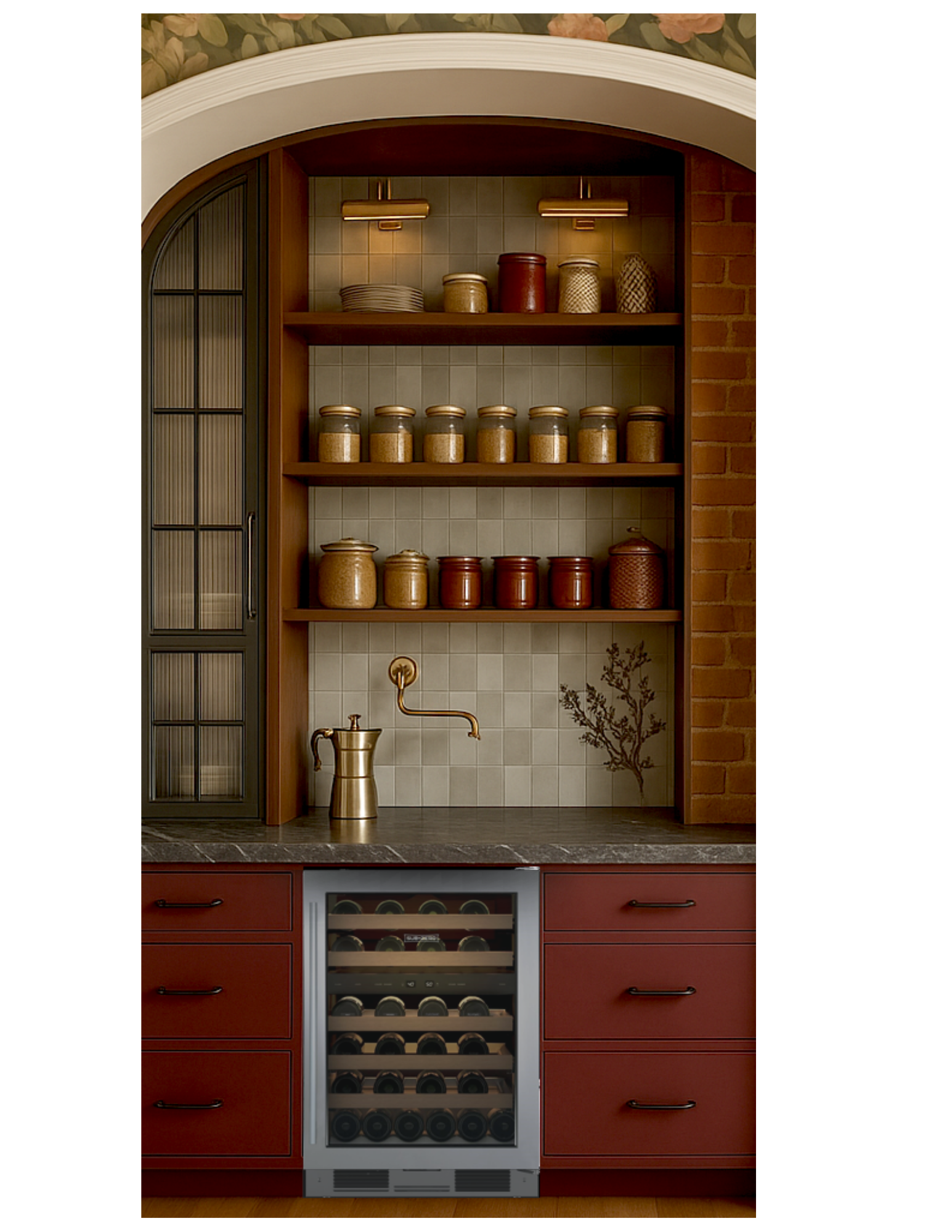 Open shelves filled with cookbooks, local ceramics, or family heirlooms create instant personality. To keep these displays intentional rather than overwhelming, we balance them with meticulously planned cabinetry. Deep drawers for pots and pans, integrated spice pull-outs, and hidden appliance garages ensure everyday items remain accessible but out of sight.